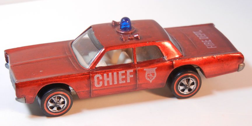 Modeled after the Plymouth Fury, the Fire Chief Cruiser uses the exact same casting as the 1969 Custom Police Cruiser. Both are labeled "Cruiser" on the base.
